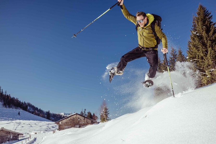 Die tief verschneite Winterlandschaft des Alpbachtals in vollen Zügen genießen und sich nebenbei noch fit halten. Das Schneeschuhwandern beansprucht die gesamte Körpermuskulatur, besonders die Bein- und Gesäßmuskeln. In einer Stunde Schneeschuhwandern kann man circa 400 bis 600 Kalorien verbrennen.