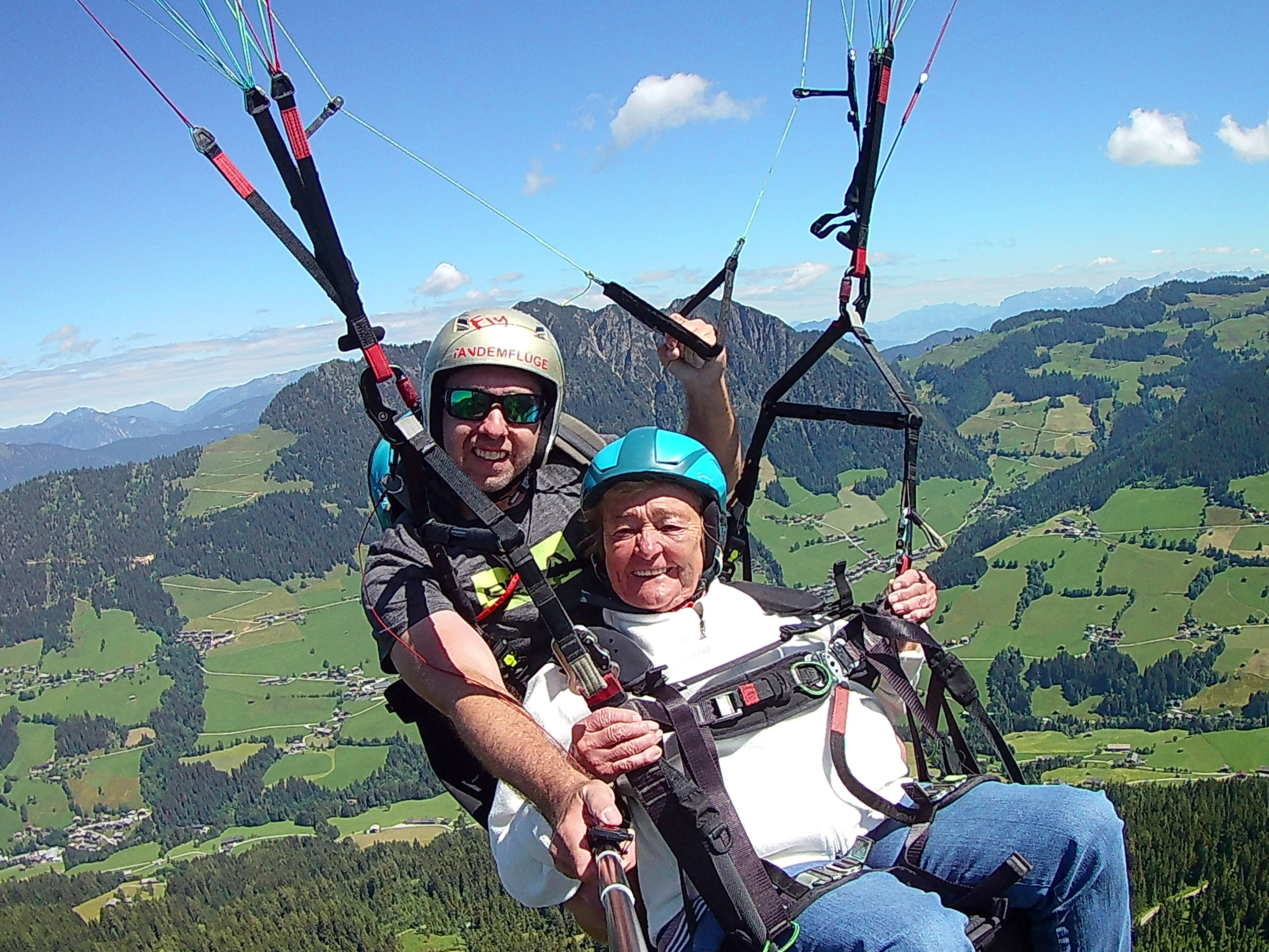 Einen lang gehegten Traum erfüllte sich Adelheid Franzl mit einem Tandemflug im Alpbachtal.