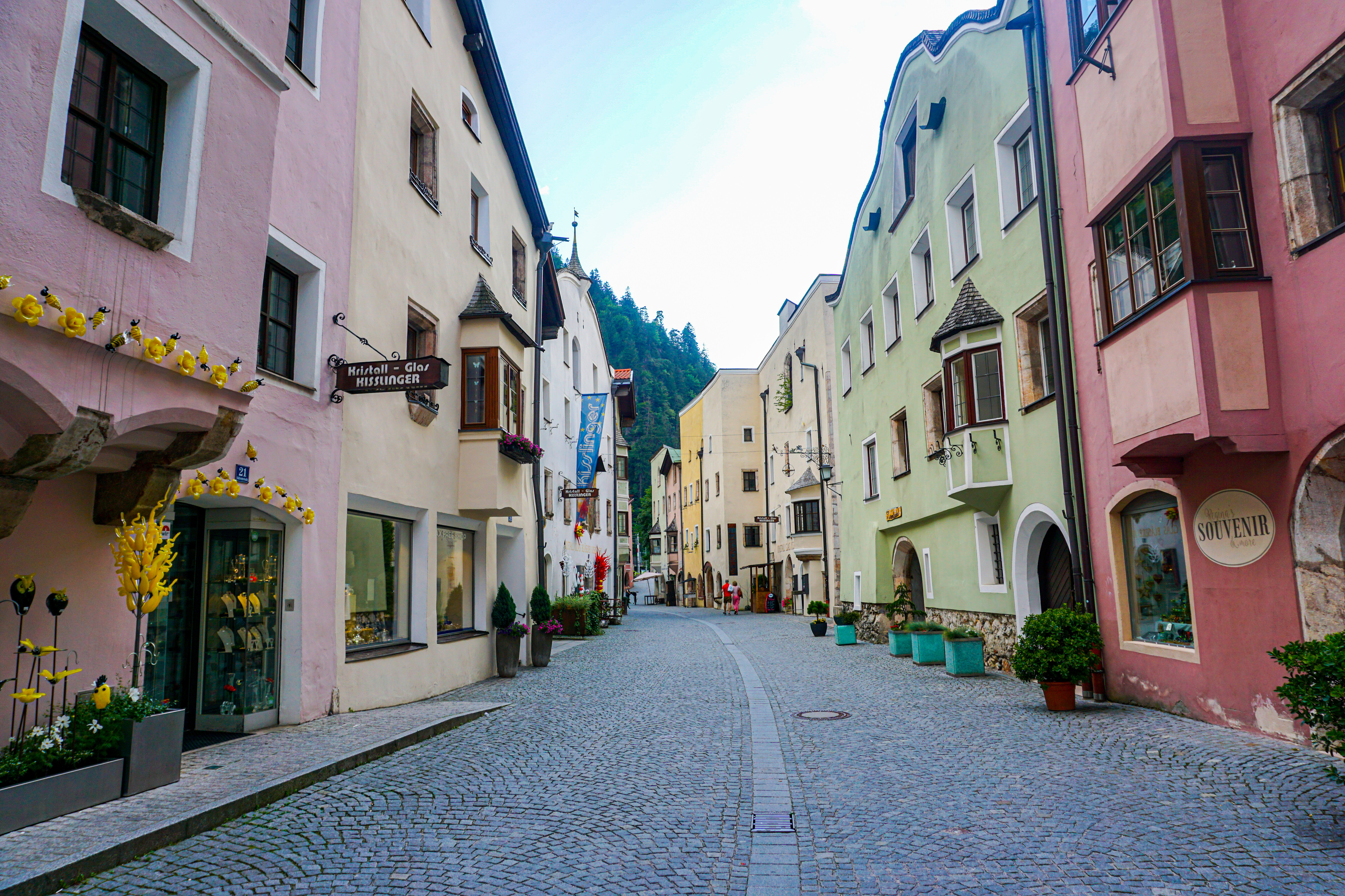 Zwischen dem felsig vorspringenden Schlossberg und dem Inn eingebettet liegt die Stadt Rattenberg.