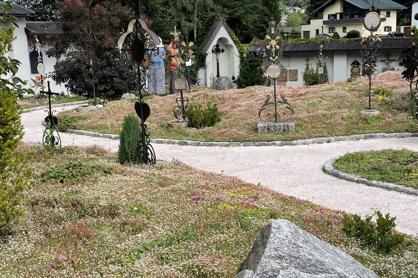 Hans Guggenberger betreibt einen Museumsfriedhof, auf dem Grabkreuze mit teils lustigen aber auch skurrilen Inschriften ausgestellt sind. Wenn man über den Friedhof spaziert, begegnet man Sprüchen wie „Hier schweigt Johanna Vogelsang, sie zwitscherte ein Leben lang“ oder „Aufigschtiegn, obegfalln, hin gwesn“, was soviel bedeutet wie "hinaufgestiegen, herunter gefallen, gestorben". Bei so viel posthumer Freimütigkeit kann man nur schmunzeln. Offenbar hatte man früher einen etwas anderen Zugang zum Tod ...