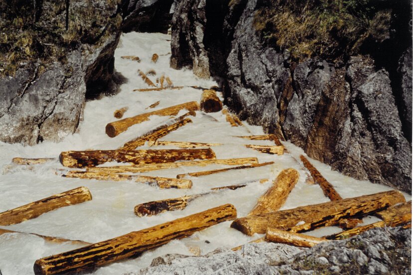 „Es waren aber meist mehrere Vor- und Nachschwemme nötig, um das gesamte Holz hinauszubefördern“, erinnert sich Marksteiner. Die Bevölkerung wusste, wenn die Ache ansteigt, dann kommt bald auch das Holz. Ein Naturschauspiel aber auch ein Grund, an diesen beiden Tagen genügend Abstand zum Wasser zu wahren. An den Ufern mussten die Männer die Stämme mit langen Stangen immer wieder weiterscheiben und in die richtige Position bringen. Dennoch ließen sich gelegentliche Verklausungen (auch Fuchs genannt) nicht vermeiden. In Extremfällen mussten die sogar gesprengt werden.