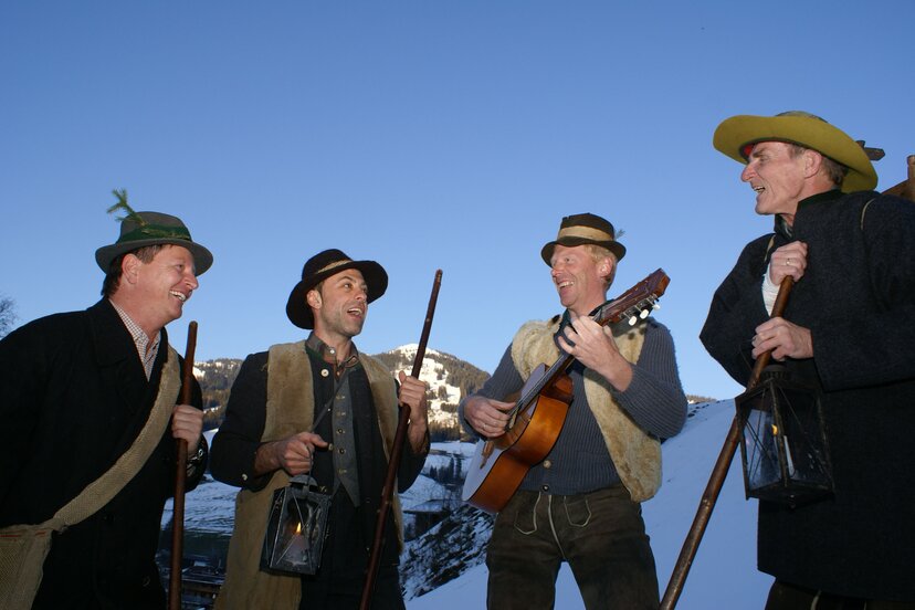 Der Brauch der Anklöpfler wird auch in Reith i.A. vom Kirchen- und Heimatchor hochgehalten. Mitsingen darf nicht jeder: „Weil ohne schöne Stimme braucht keiner mitgehen“, lacht Andreas. Die Anklöpflergruppen singen und reimen in Mundart, künden mit altüberlieferten Liedern und Eigenkompositionen von der Ankunft des Heilands. Begleitet werden die Lieder mit Gitarre oder Ziehharmonika.
