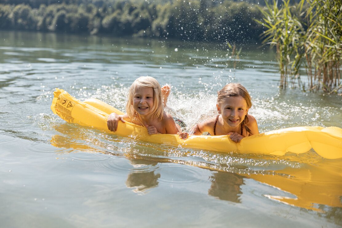 • Kinder auf einer Luftmatratze im Reintalersee in Kramsach | © Alpbachtal Tourismus | shootandstyle Kinder auf einer Luftmatratze im Reintalersee in Kramsach | © Alpbachtal Tourismus | shootandstyle