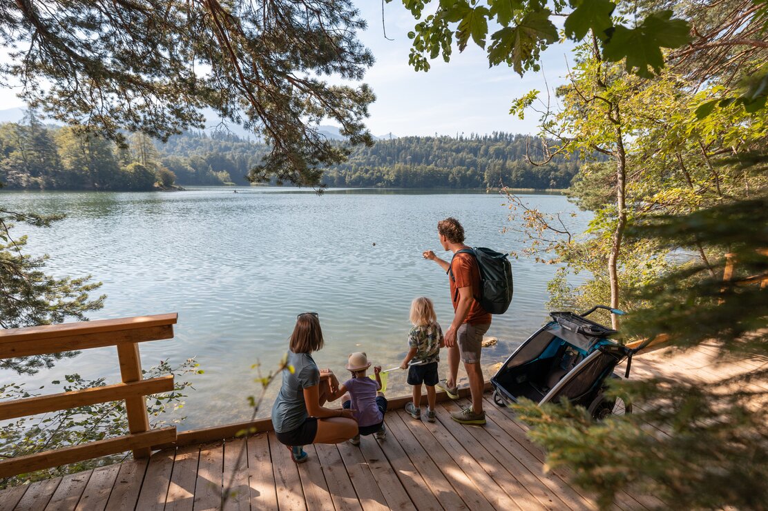 • Familie macht einen Rundspaziergang entlang des barrierefreien Wanderweges am Reintalersee in Kramsach  | © Alpbachtal Tourismus | shootandstyle Familie macht einen Rundspaziergang entlang des barrierefreien Wanderweges am Reintalersee in Kramsach  | © Alpbachtal Tourismus | shootandstyle
