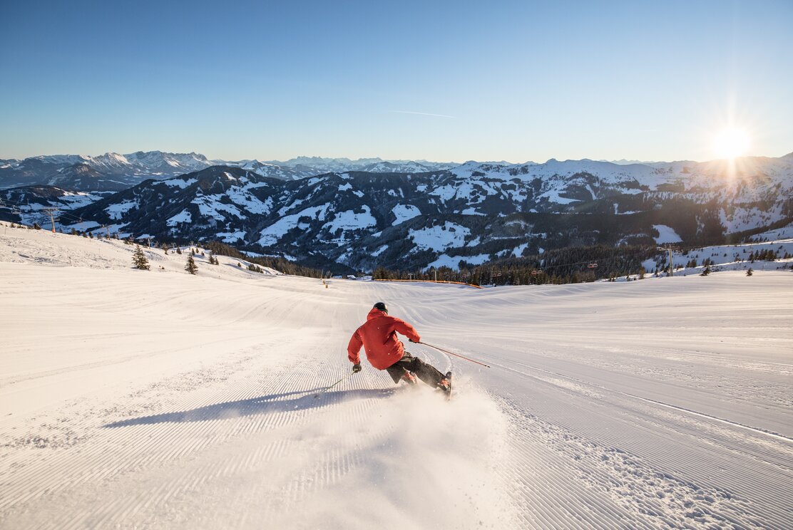 Ab Anfang März 2026 genießen Frühaufsteher wieder jeden Samstag das "First Line Skiing am Wiedersberger Horn" und setzen ihre Schwünge als Erster in die frisch präparierten Pisten.