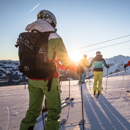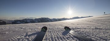 Bereits ab 07:00 Uhr Früh fährt man mit der Pöglbahn auf den Berg und wedelt mit den ersten Sonnenstrahlen um die Wette. Mit der Hornbahn 2000 geht's weiter zum höchsten Punkt im Skigebiet, wo man die einzigartige Atmosphäre frühmorgens am besten genießt.