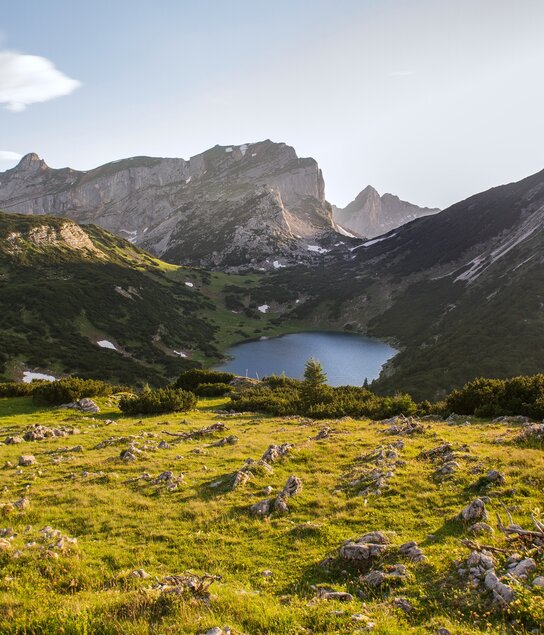Von Kramsach geht es nach Brandenberg und retour – und das über vier majestätische Gipfel. Aufs Wanderkonto gehen dabei insgesamt 50 Kilometer und 3.600 Höhenmeter. Unbedingt einplanen: eine kurze Verschnaufpause beim Zireiner See! Ganz schnell wird dir dort klar werden, warum das „blaue Auge des Rofan“ einer der meistfotografierten Bergseen Tirols ist!