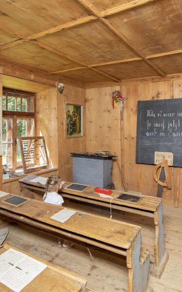 Das Museum ist in vier Themenbereiche gegliedert! Bei "Gemeinschaft" findest du unseren Lieblingsplatz "Die alte Schule".