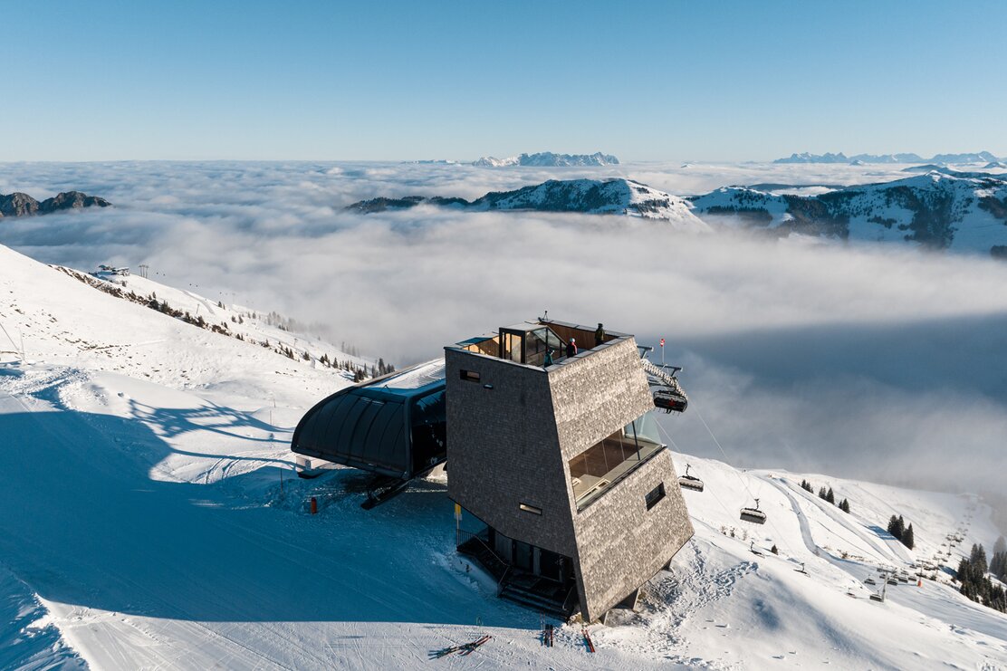 Der Top of Alpbachtal hält einen Innenraum mit Panoramafenster sowie eine Aussichtsplattform mit einzigartigem 360-Grad-Rundumblick bereit. Hinter dem Projekt steht das Architektenbüro Snøhetta mit Niederlassung in Innsbruck.