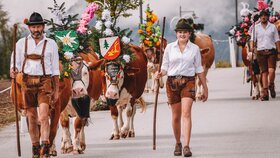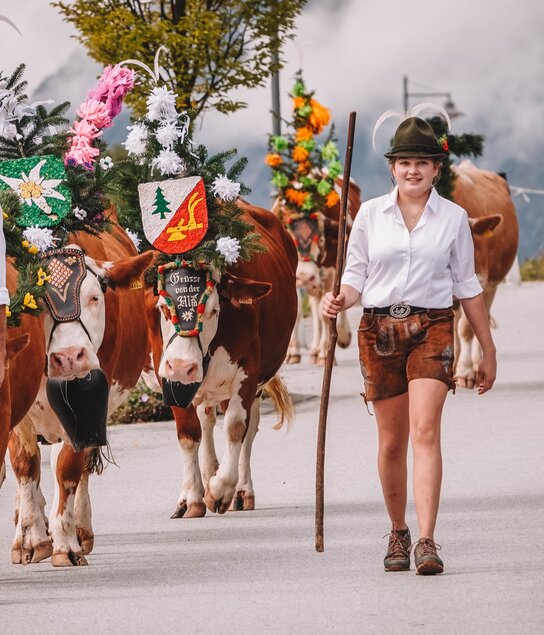 Ab 12:00 Uhr werden die ersten Kühe durch das Ortszentrum von Reith im Alpbachtal trotten. Die dickbäuchigen Schönheiten versetzten die Zuseher immer wieder in Verzücken, denn die Bauern schmücken ihre Kühe mit prächtigen Bändern, farbenfrohen Kopfschildern und fröhlich klingenden Glocken.