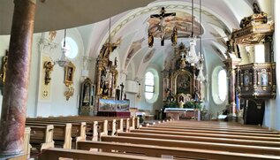 Um 1400 war eine neue Kirche errichtet worden, die aber bereits um 1677 wieder abgetragen wurde, um für die jetzige Kirche Platz zu schaffen. Der 50 m hohe gotische Turm sowie das Seitenportal wurden beibehalten. Der Rest des Bauwerkes wurde im barocken Stil wieder aufgebaut.