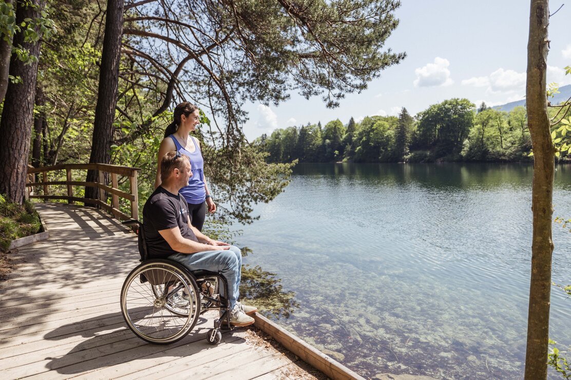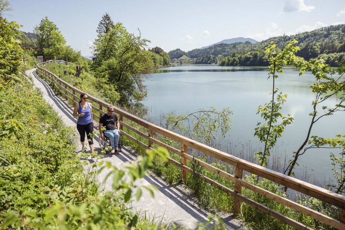 Erkunde den neu erschlossenen, barrierefreien Weg entlang des Reintalersees in Kramsach. Egal, ob du im Rollstuhl sitzt, einen Rollator benutzt oder mit einem Kinderwagen unterwegs bist, dieser Weg ermöglicht es allen Besuchern, die Schönheit der Natur am Seeufer unbeschwert zu genießen.