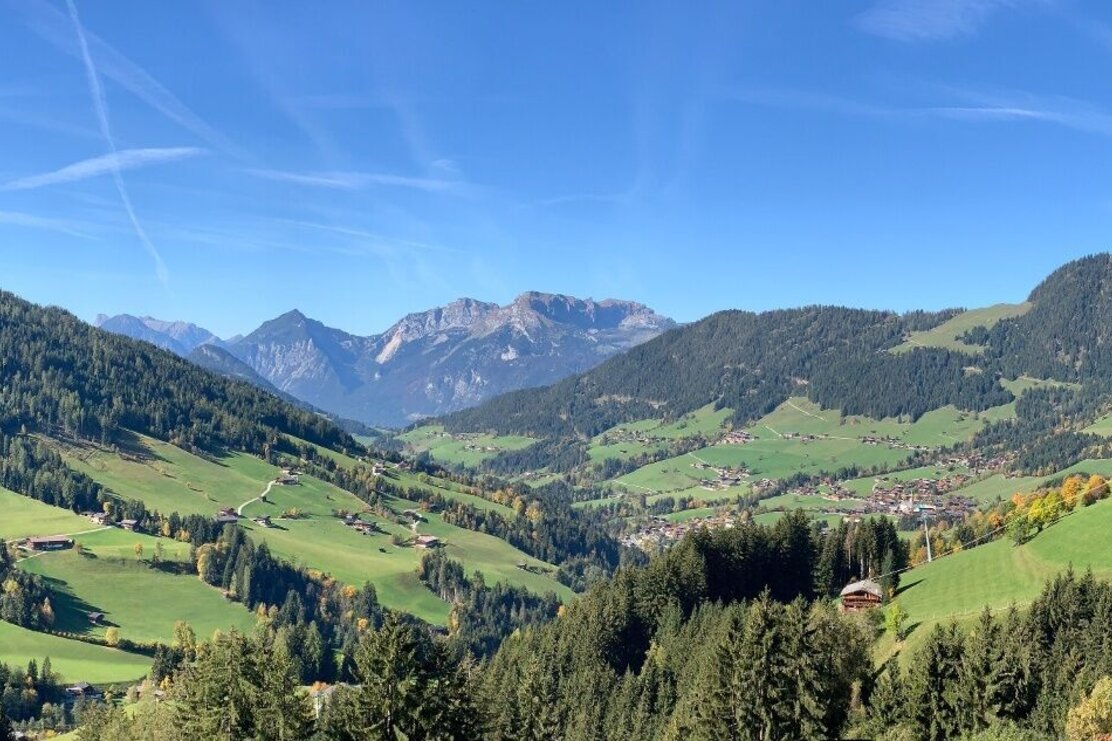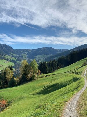 Es geht nun weiter zur Hochlindalm und abwärts zur Kohlgrubenalm. Nun wieder ein Stück aufwärts zur Bergstation der Wiedersbergerhornbahn fahren. Hier gibt es auch einige Einkehrmöglichkeiten. Unterhalb vom Berggasthof Hornboden rechts abwärts über die Mountainbikeroute Nr. 320 in den Greiter Graben und Tal auswärts nach Inneralpbach.