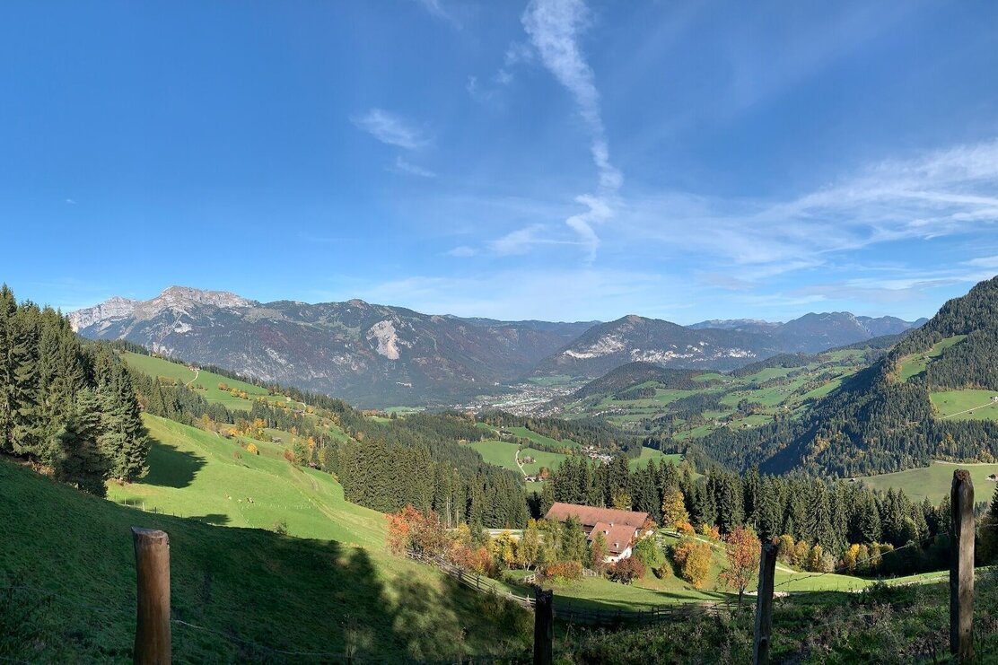 Beim Connys Original Tiroler Wirtshaus rechts in den Luegergraben, bei der "Bubenkapelle" über die Brücke und links aufwärts zum Oberen Höhenweg bis nach Alpbach. Nach dem Dorfzentrum gerade aus, die Höhe beibehalten, und Tal auswärts über "Außerland", "Naschberg" und "Scheffachberg" nach Reith im Alpbachtal - immer auf der MTB-Route Nr. 321.