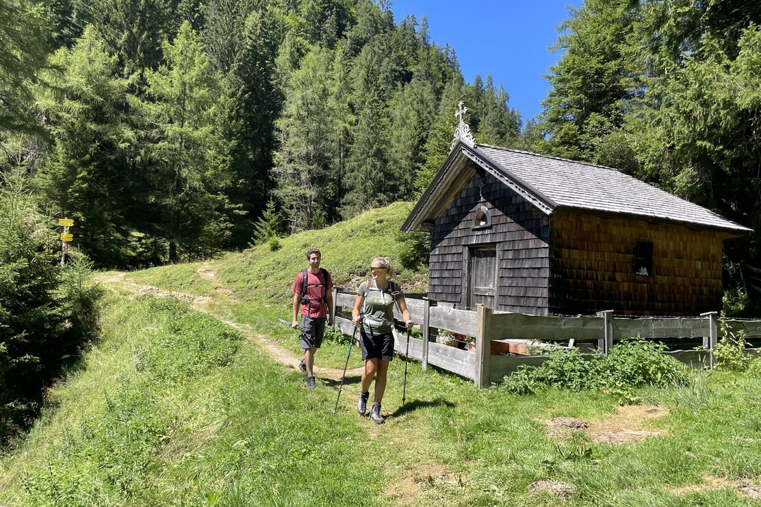 Vom Parkplatz oberhalb der Jausenstüberl Oberthaler zuerst der Forststraße und dann auf Almwiesen aufwärts bis zur Höslkapelle und zur Hösllacke (30 min) . An der Lacke rechts vorbei über den "Kupfersteig/Kaiserbründl" der Beschilderung "Holzalm" folgen. Der Steig führt leicht ansteigend durch den Wald an einem Erzsteinbruch* vorbei bis zum Berggasthof Holzalm (50 min). Oberhalb der Alm links halten und zügig aufwärts bis zur Gratlspitze 1 h 15 min Genieße den herrlichen Rundumblick auf dem Gipfel! Für den Abstieg der Beschilderung "Hösljoch" folgen. d.h. unterhalb vom Gipfel den Weg süd/ostwärts wählen und teils über Grate immer wieder auf- und abwärts (Achtung: Trittsicherheit erforderlich)bis zur "Halsbergalm", an dieser vorbei bis zur bereits bekannten Hösllacke (1 h 30 min), von hier auf bekanntem Weg retour zum Auto (30 min)
