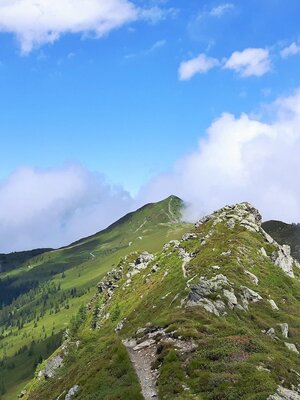 Retour den selben Weg bis zur Hornalm gehen, von hier dann 30 min. steil aufwärts auf das Wiedersberger Horn 2.128 m und dann die letzten 300 Hm abwärts zur Bergstation.
