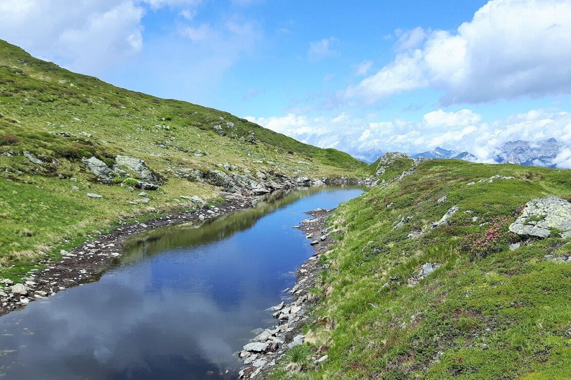 • Blick zum Bergsee Sagtaler Spitzen Wanderung | © Sandrine Stock Blick zum Bergsee Sagtaler Spitzen Wanderung | © Sandrine Stock