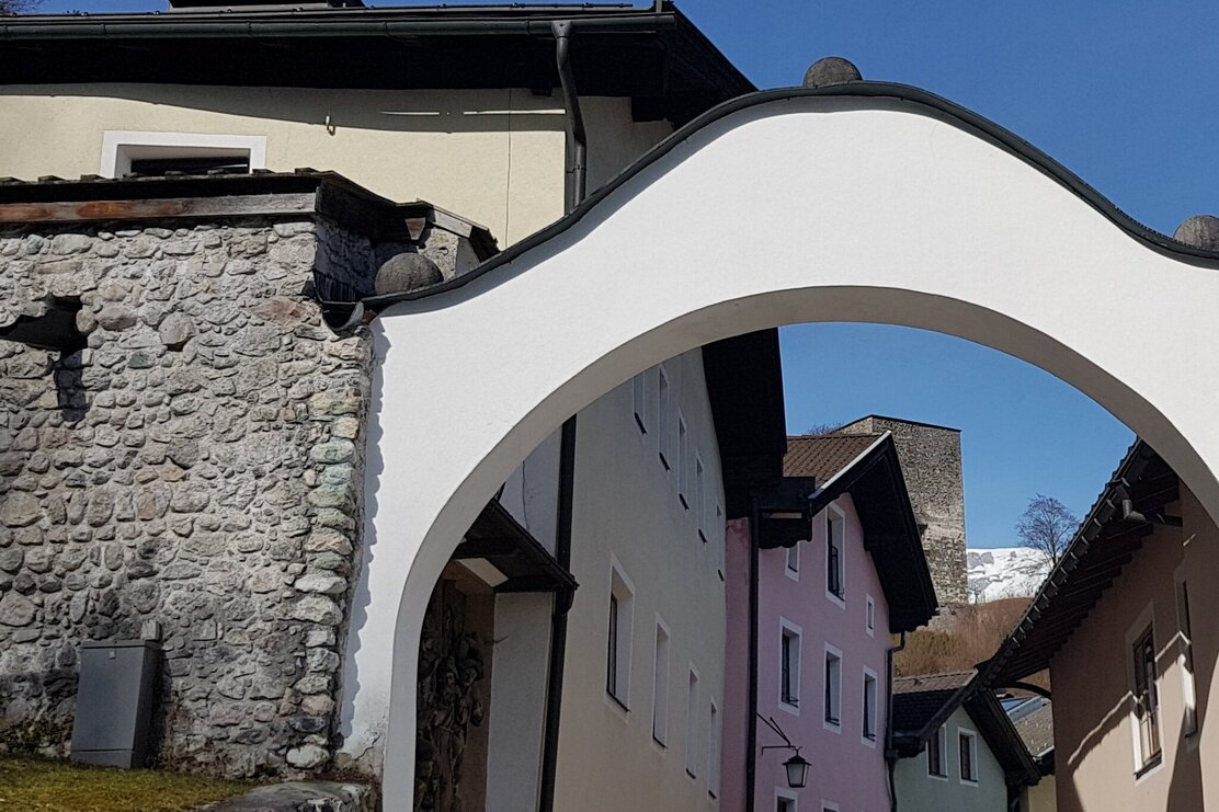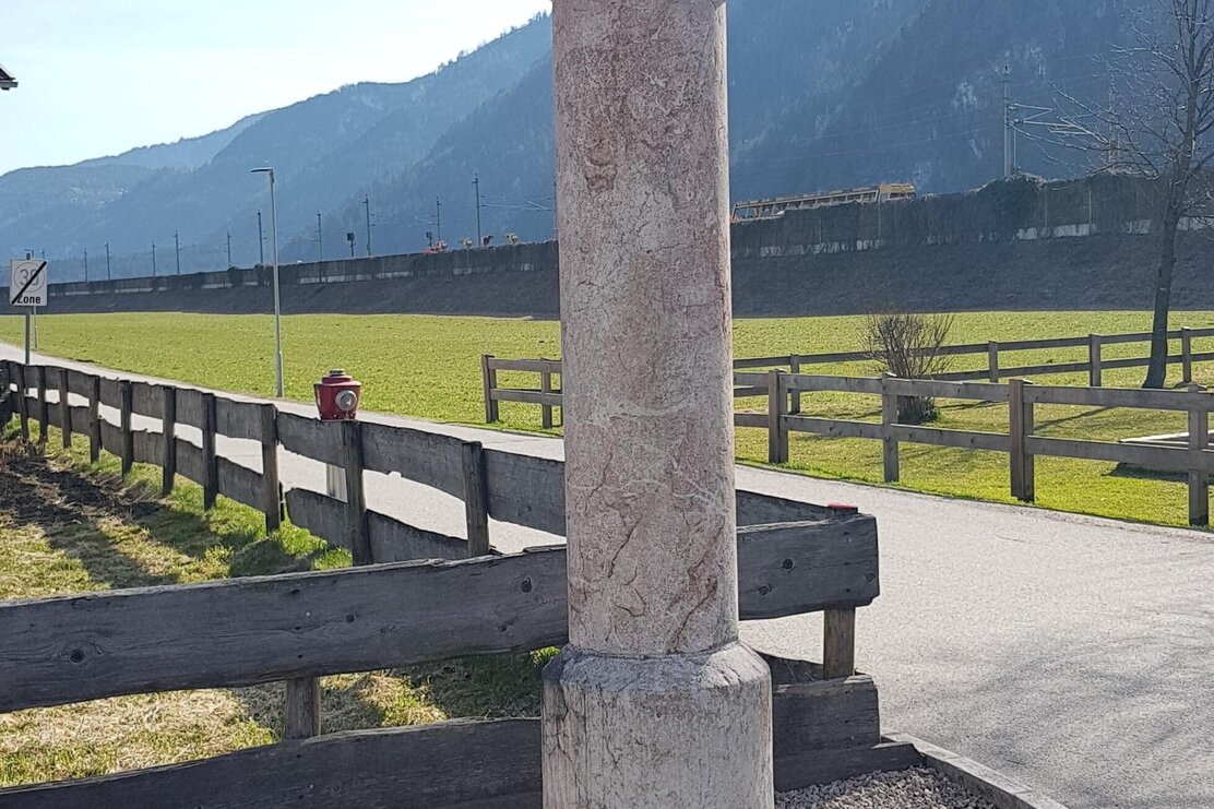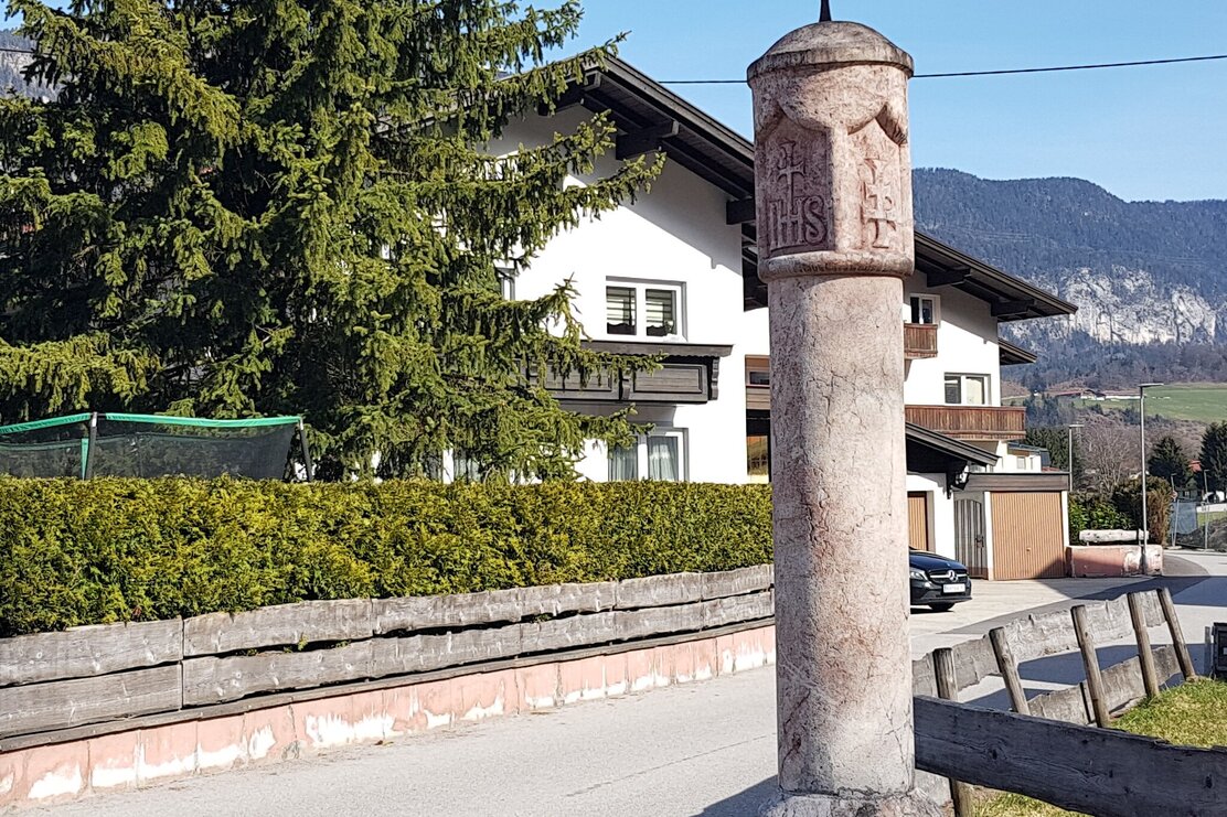 Weiter geht der Weg westwerts entlang des Innradweges bis zum Hotel Sonnhof in der Mitte des Dorfes Radfeld. Hier die Straße überqueren, bei einem kleinen alten Haus die kleine Siedlungsstraße entlang gehen in Richtung Rattenberg. Nach ca. 500 m gabelt sich die Straße und links in Richtung Bahndamm gehen. An der nächsten Kreuzung findest du die "Pestsäule" und den Kremerstadl. Der Straße weiter folgend in Richtung Rattenberg an der Stopptafel links abbiegen, unter der Bahnunterführung durch gehen und die kleine Straße gleich vor dem Friedhof rechts in Richtung Stadtmitte von Rattenberg nehmen.