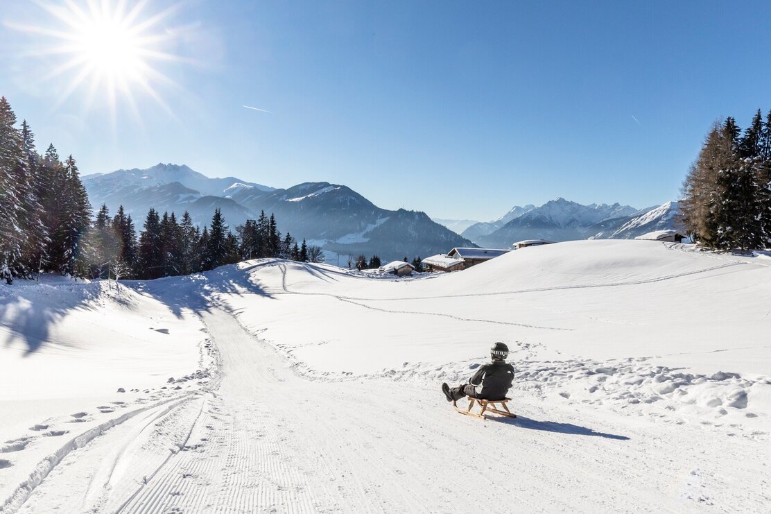Der Abstieg ins Tal führt zur romantischen Hubkapelle, die inmitten der Winterlandschaft wie ein stiller Wächter wirkt. Ein idealer Ort, um kurz innezuhalten und die friedliche Atmosphäre auf sich wirken zu lassen. Von hier aus sind es nur noch wenige Minuten zurück ins charmante Ortszentrum von Reith im Alpbachtal.