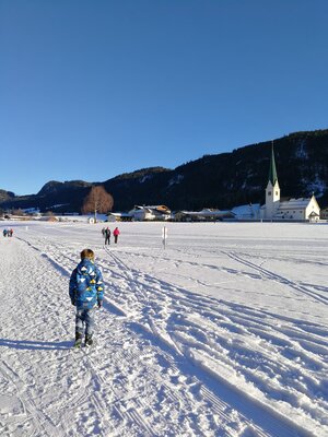 Die sonnige Wanderung startet im Dorfzentrum von Reith im Alpbachtal. Vorbei an der Kirche spazieren wir links über die sogenannte Seeleite am Fußweg oberhalb des Reither See´s. Bei ausreichend Schneelage haben wir bereits hier einen eindrucksvollen Blick auf das winterliche Dorf. Weiter geht´s entlang der Gemeindestraße bis zum Alpbachtaler Kinderpark (nur im Sommer geöffnet). Hier links abbiegen und in den Ortsteil Ried spazieren bis wir zu die wunderschönen Reither Almen erreichen (ein Hüttendorf). Die Rundtour führt am Waldrand entlang bis zum Brandachhof (Achtung – Überqueren der Skipiste notwendig!) und dort gerade aus weiter bis wir die Alpbacher Landesstraße überqueren. Ab hier führt der Weg links immer oberhalb der Landesstraße talauswärts. Kurz vor der Galerie (Tunnel) links abbiegen zurück ins Dorfzentrum.