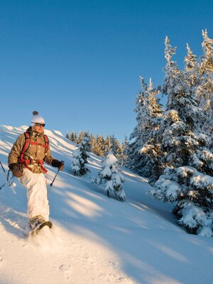 Schneeschuhwanderung auf der Sonnenseite des Tales mit vielen Eindrücken und Ausblicken
