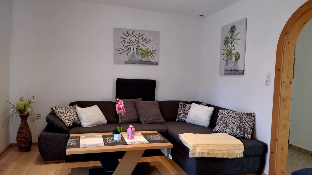 Die gemütlich eingerichtete Wohnung im 2. Stock unseres Hauses ist neuwertig eingerichtet, verfügt über 2 getrennte Schlafzimmer und 2 Balkone. Einem Wohnzimmer mit Kaminofen und einer kleinen aber feinen Kochnische mit Sitz Essecke. Das Badezimmer ist mit Dusche und WC. Parkplatz steht zur Verfügung.