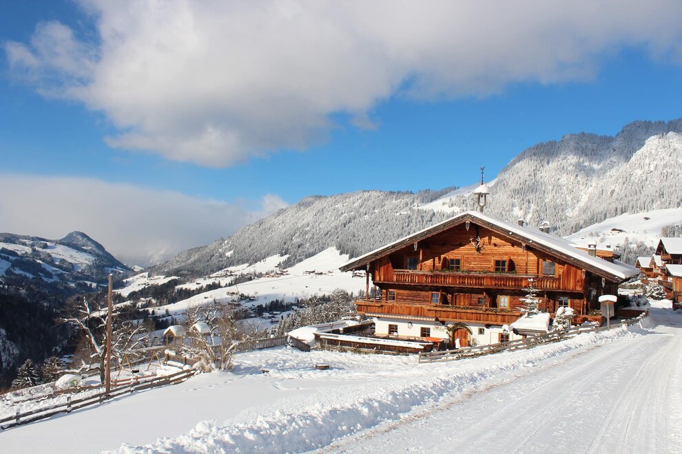 Unser Haus ist erbaut im typischen Alpbacher Baustil und liegt idyllisch an einem Südhang -