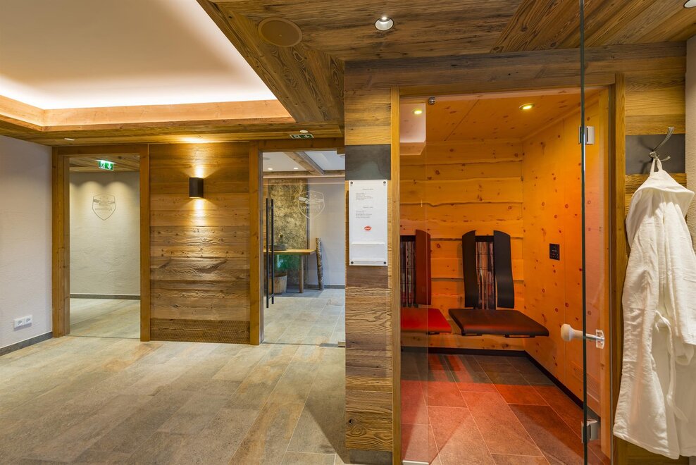 Wir bieten unseren Gästen einen Wellnessbereich mit Sauna, Dampfbad, Infrarotkabine und Ruheraum mit wunderschönen Blick in die Bergwelt.