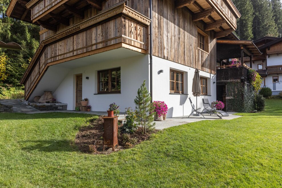 Unser Chalet „Alte Schmiede“ wurde vor über 300 Jahren erbaut und 2018 komplett renoviert. Die Wohnfläche von 180m² erstreckt sich über zwei Etagen. Im Obergeschoss befinden sich 4 Schlafzimmer und ein Kleiderraum. Die alten Holzwände erschaffen eine behagliche Atmosphäre und Gemütlichkeit. Im Erdgeschoss befinden sich zwei Bäder mit Dusche sowie WC. In der urigen Bauernstube mit dem großen Esstisch lassen sich gemütliche Stunden verbringen. Die voll ausgestattete Küche lässt keine Wünsche offen. Nach erlebnisreichen Tagen kann man in der Zirbensauna mit Ruhebereich entspannen. Die zur Südseite ausgerichtete Veranda lädt zum Verweilen ein. Ein Abstellraum für Ski- bzw. Snowboards mit Skischuhheizung ist ebenso vorhanden. W-Lan ist ab Frühjahr 2019 verfügbar.