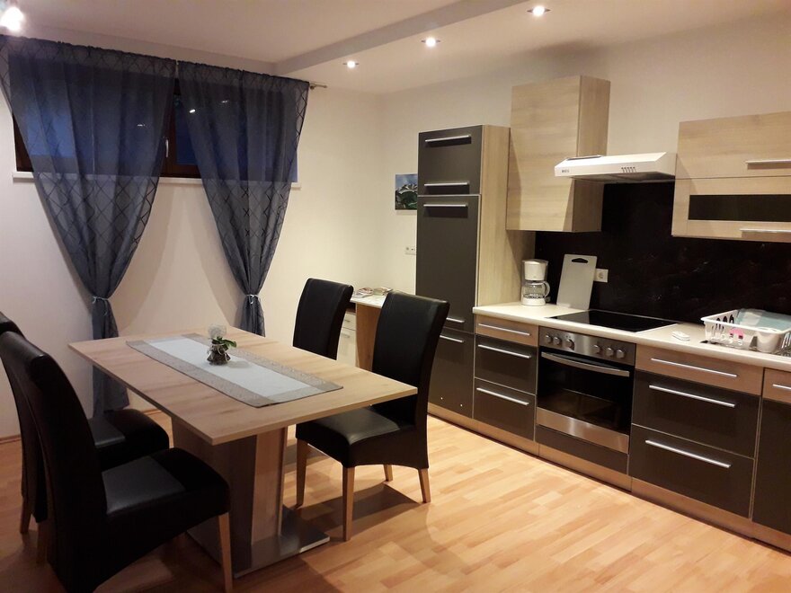 Der große Essbereich ermöglicht gemütliches Beisammensein. Die Wohnküche ist voll ausgestatett.
