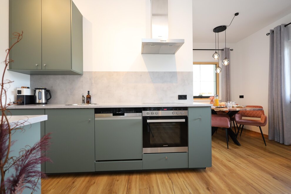 In der Wohnküche können Sie gemeinsame Mahlzeiten zubereiten und den Tag entspannt ausklingen lassen. In der Küche finden Sie alles, was Sie benötigen, um köstliche Mahlzeiten zuzubereiten (inkl. Geschirrspühler). Die Sitzecke in der Wohnküche bietet genügend Platz für gemeinsame Mahlzeiten oder Spieleabende.