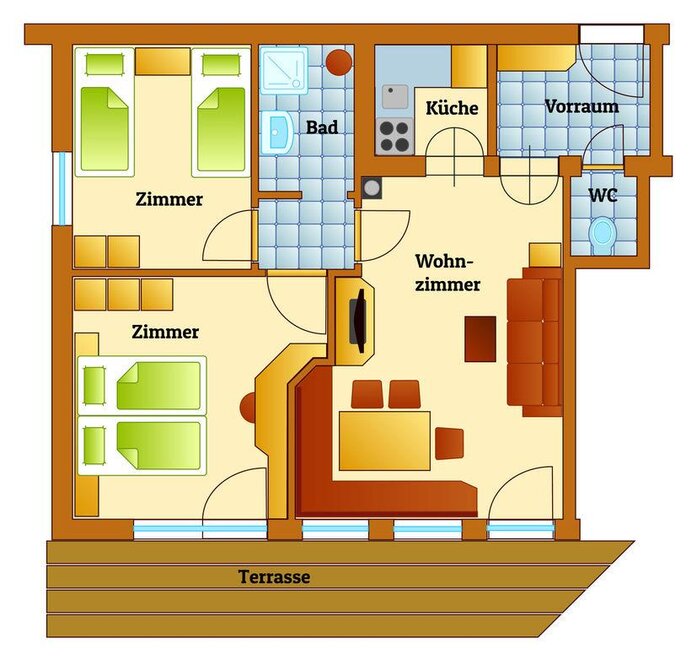 Größe 64 m² Belegung 1 - 6 Erwachsene , 0 - 5 Kinder Zimmer 3 Schlafzimmer 2 Zimmerdetails