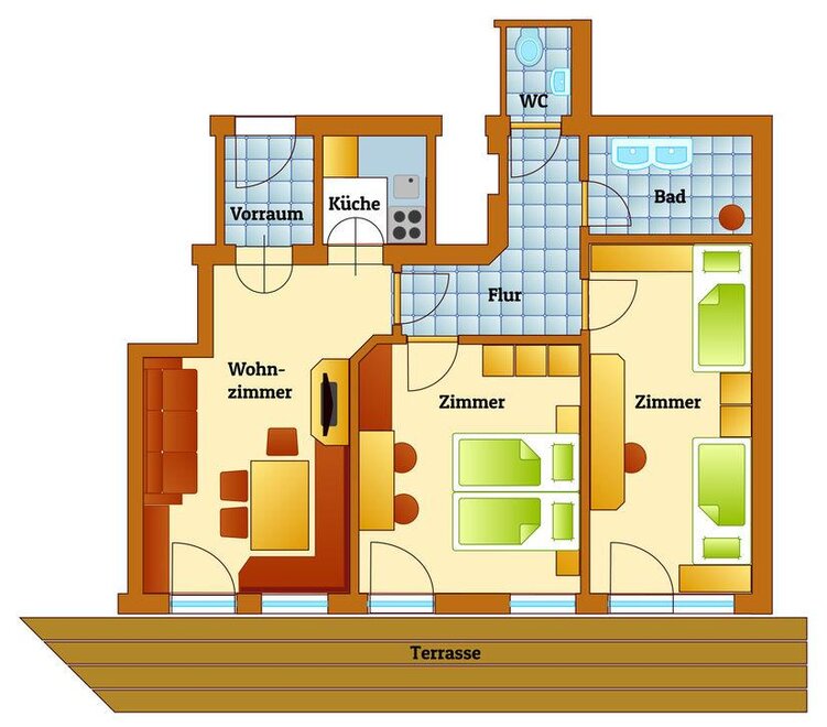 Größe 64 m² Belegung 1 - 6 Erwachsene , 0 - 5 Kinder Zimmer 3 Schlafzimmer 2 Zimmerdetails