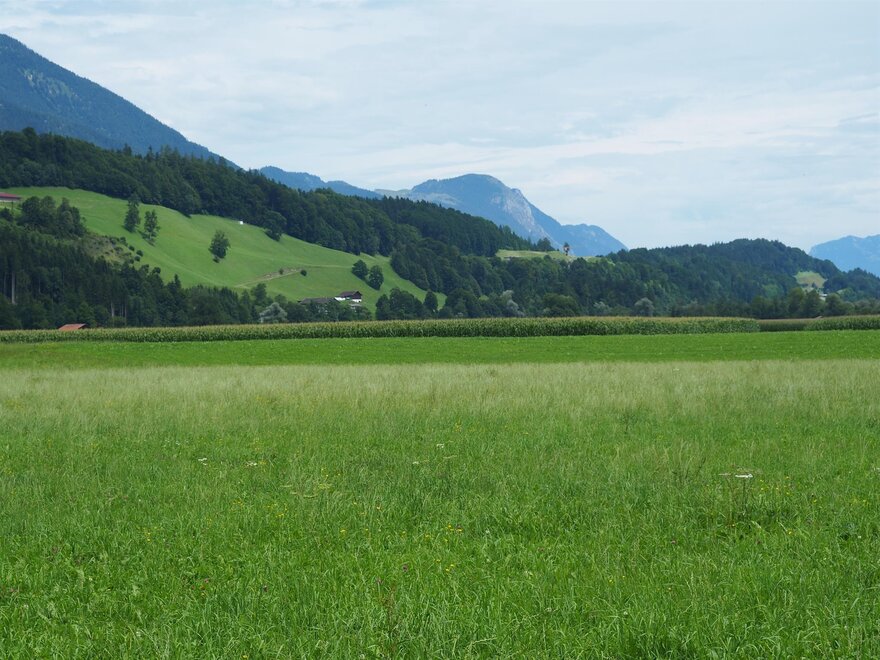 Genießen Sie den herrlichen Panoramablick ins Rofangebirge, zu den Kitzbüheler Alpen, Tuxer Alpen und bis zum Wilden Kaiser.