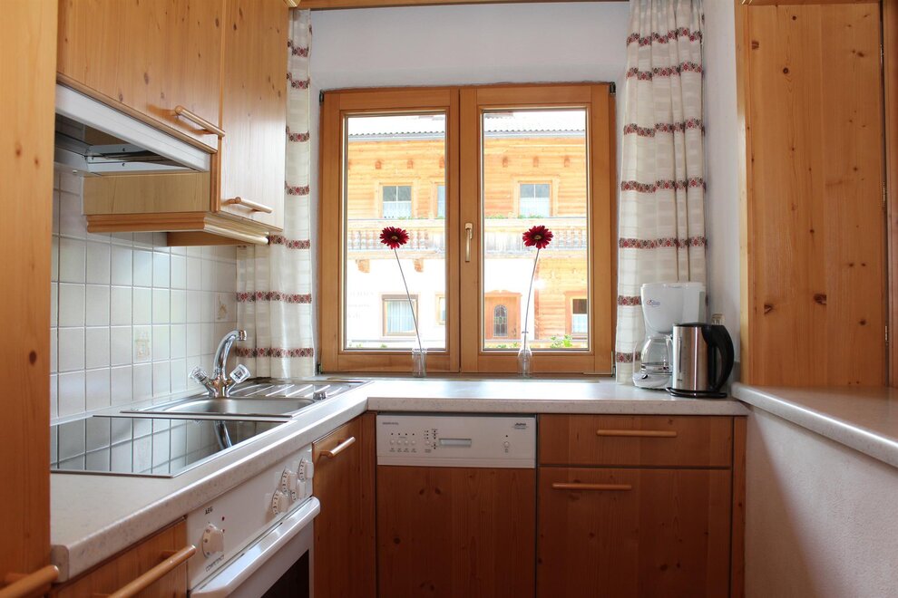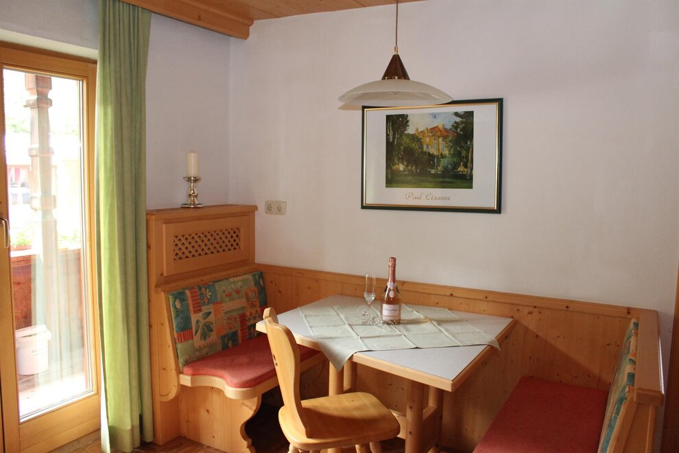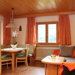 Der Wohnbereich mit integrierter, großzügig ausgestatteter Küche ist Herzstück des Appartements und Treffpunkt für die ganze Familie. Diese Ferienwohnung ist südseitig ausgerichtet und bietet einen herrlichen Panoramaausblick auf die umliegende Bergwelt.