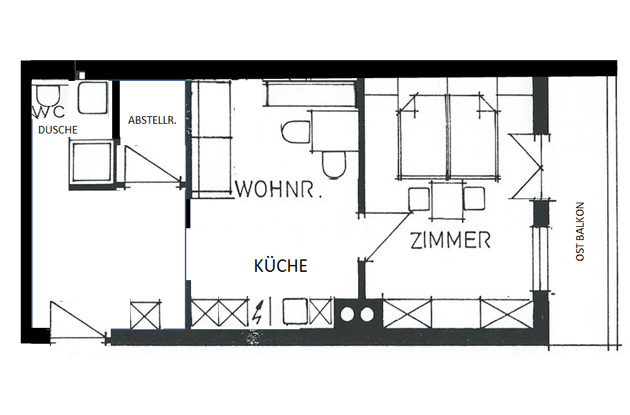 Lage: Im Moahof, 2. Stockwerk, Appartement mit 1 Schlafzimmer