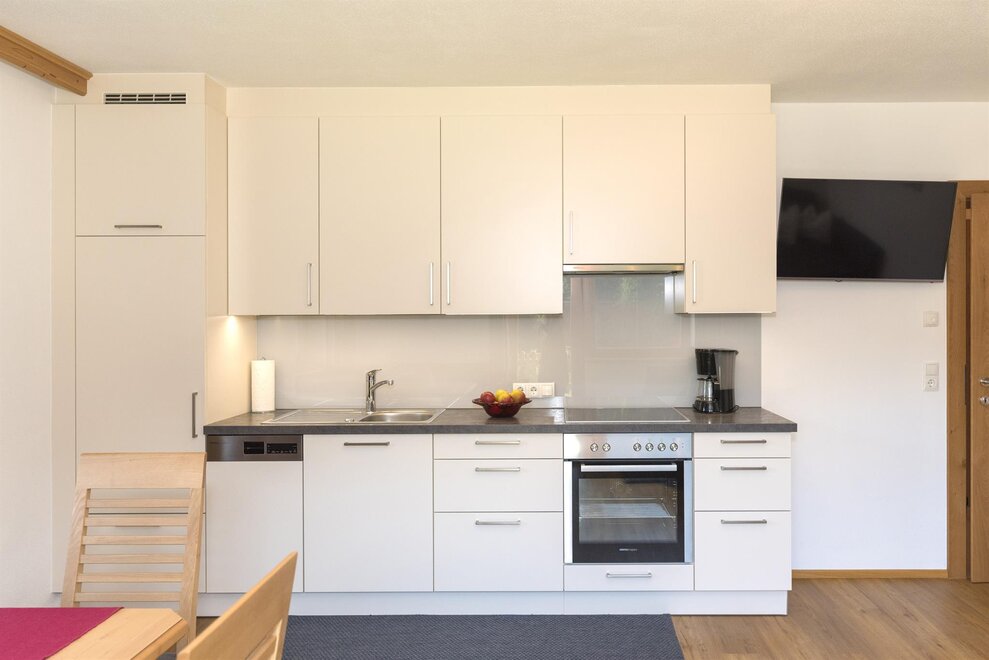 Die Küche ist ausgestattet mit Elektroherd und Backrohr, Kühlschrank, Geschirrspülmaschine, Wasserkocher, Frühstückstoaster, Kaffeemaschine, Kochtöpfe & Pfanne, Geschirr, Gläser & Besteck.Weiters gibt es einen TV, kostenloses Wlan, Parkplatz vor dem Haus, Kinderhochstuhl und Gitterbett