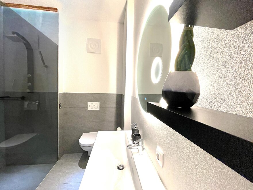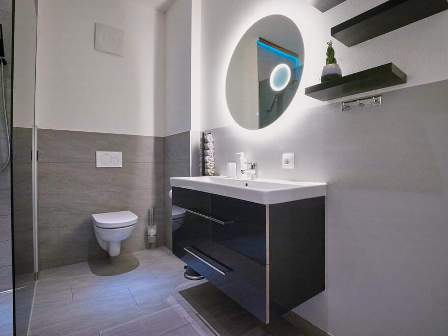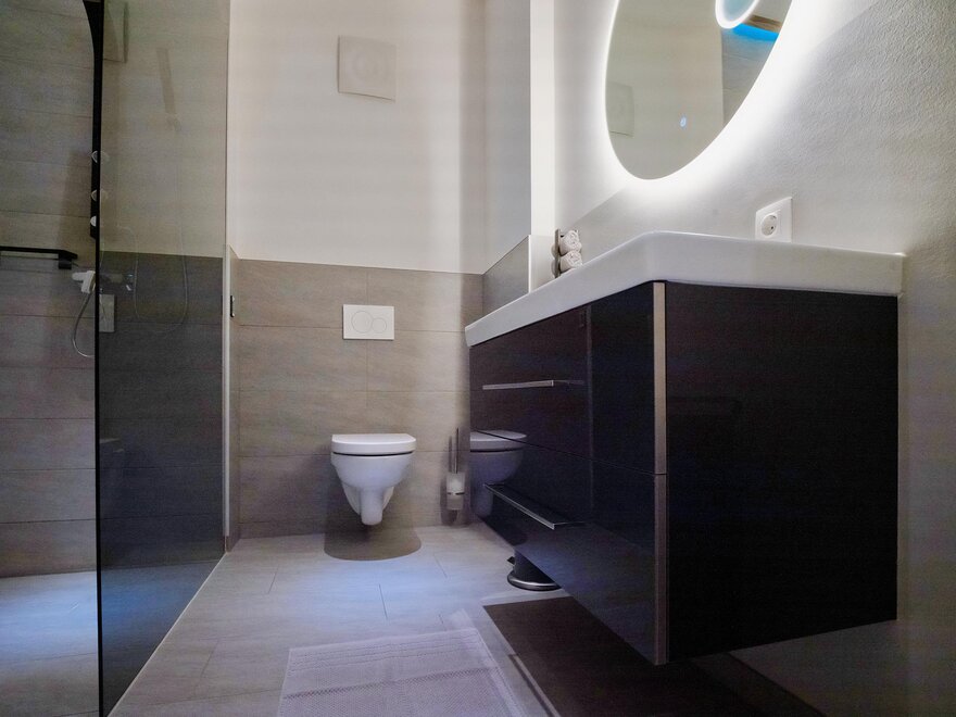 Fließendes Kalt- und Warmwasser, WC, Doppelwaschbecken, Dusche, WC, Dusche, Badezimmer Anzahl: 1, Bad, WC, Waschtisch, Toiletten Anzahl: 1