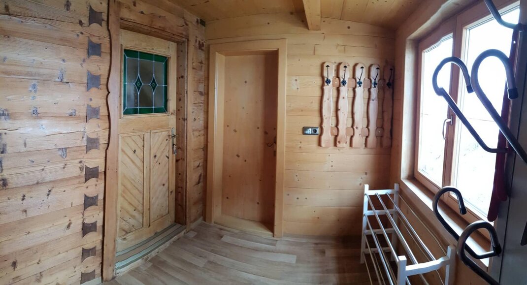 Es gibt zwei Etagen. In erster ist die Wohnküche, zwei Schlafzimmer, zwei WC und Badezimmer und in der zweiten sind zwei Schlafzimmer.