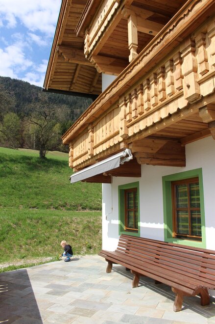 Ein echtes Tiroler Bauernhaus mit 300 m² Wohnfläche auf einem traditionellen, bewirtschafteten Hof, umgeben von ursprünglicher Natur. Im Erdgeschoss befindet sich eine großzügige Ferienwohnung zur alleinigen Nutzung für bis zu 4 Personen. Im 1. Stock stehen zwei, mit viel Liebe renovierte Gästezimmer für je 2 Personen mit gemeinsam genutzter Küche und Badezimmer bereit.