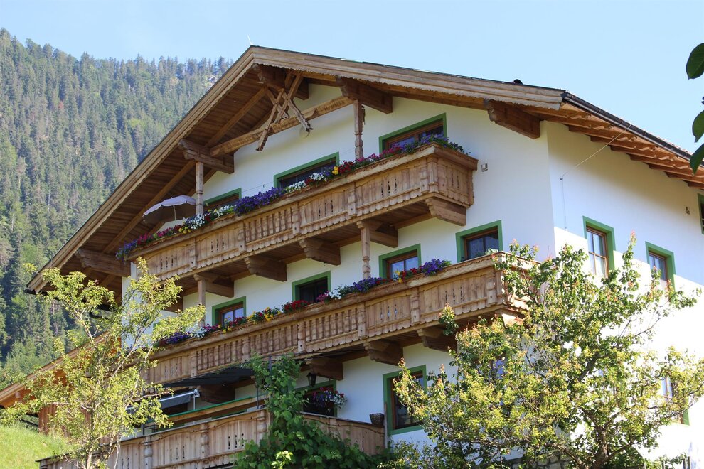 Ein echtes Tiroler Bauernhaus mit 300 m² Wohnfläche auf einem traditionellen, bewirtschafteten Hof, umgeben von ursprünglicher Natur. Im Erdgeschoss befindet sich eine großzügige Ferienwohnung zur alleinigen Nutzung für bis zu 4 Personen. Im 1. Stock stehen zwei, mit viel Liebe renovierte Gästezimmer für je 2 Personen mit gemeinsam genutzter Küche und Badezimmer bereit.