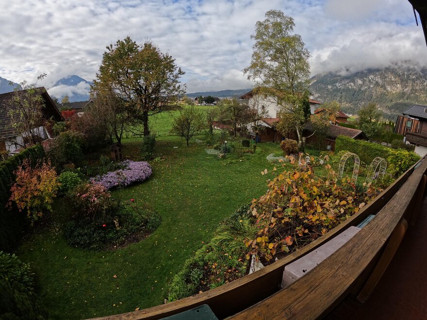 Die Ferienwohnung, am Fuße des Rofangebirges, ist umgeben von einem geschlossenen Gartengrundstück mit Wiese, Bäumen, Blumen und Sträuchern und befindet sich im ersten Stock des Hauses.
