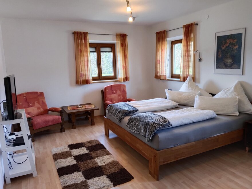 Ferienwohnung FichlehenUnsere Ferienwohnung ist 110m2 groß und verfügt über zwei gerräumige Schlafzimmer mit Kinderbett wenn gewünscht.