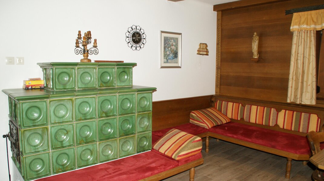 Einer gemütlichen Wohnstube mit Kachelofen und TV und Wlan.Das Badezimmer hat eine Badewanne mit Duche,Wc ,Waschmaschine und verfügt über Handtücher.