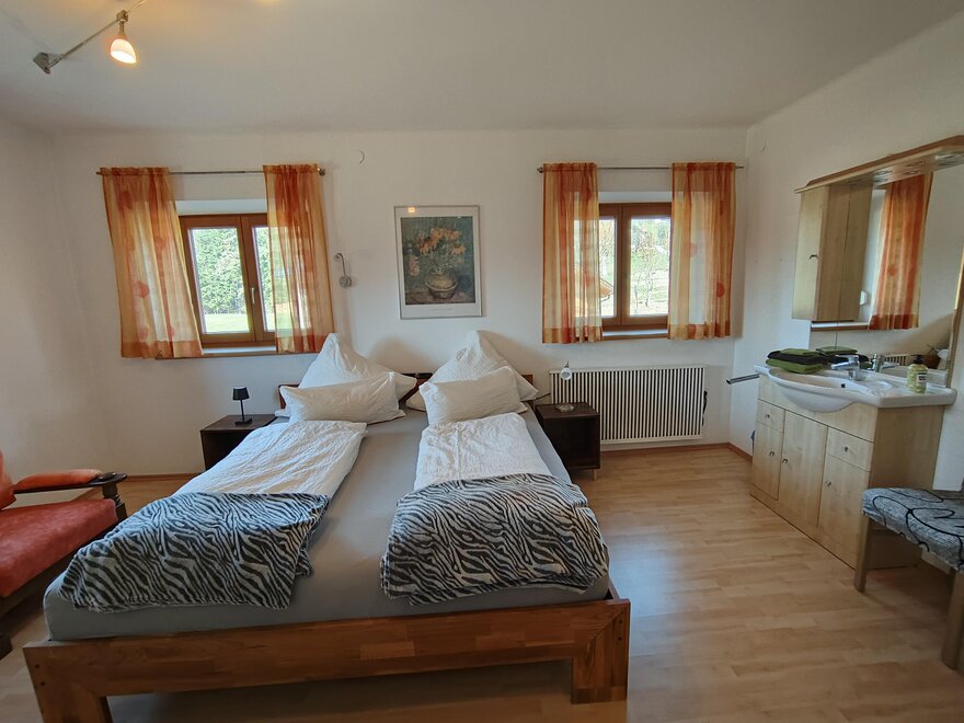 Ferienwohnung FichlehenUnsere Ferienwohnung ist 110m2 groß und verfügt über zwei gerräumige Schlafzimmer mit Kinderbett wenn gewünscht.
