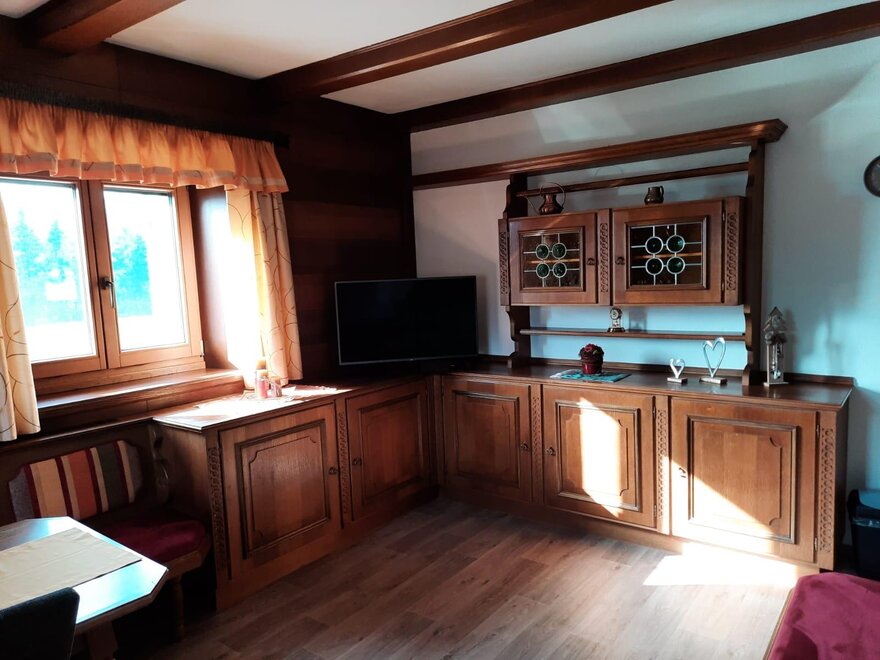 Einer gemütlichen Wohnstube mit Kachelofen und TV und Wlan.Das Badezimmer hat eine Badewanne mit Duche,Wc ,Waschmaschine und verfügt über Handtücher.