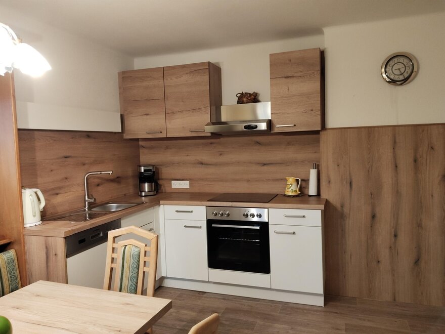 Einer vollausgestatteten Küche mit (Backofen,Kühl/gefrierschrank,Spühlmaschineund Mikrowelle) gemütliche Wohnstube mit Kachelofen und einer großen Diele.