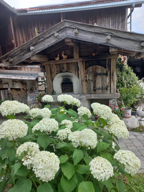 Im neu errichtetem Zuhaus befinden sich unsere Fewos, sowie die Schnapsbrennerei. Für ein frisches Frühstücksei sorgen Hühner in Freilandhaltung, gerne auch für unsere Gäste. Der alte Backofen wurde erneuert und ist in der Mitte des Hofes in Betrieb.