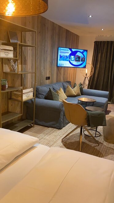 Charmantes Zimmer für 3 Personenmit geräumigen ca 45m2. Das Zimmer ist perfekt für einen gemütlichen Familien-Urlaub mit gut ausgestatteter Küche, Wohnzimmerbereich, Tisch & Sitzecke, Couch, Bad mit Dusche & WC, Balkon mit Aussicht auf die Bergwelt. Im Preis inbegriffen ist Frühstück. Von Sonntag bis Mittwoch servieren wir Ihnen ein köstliches Frühstück an den Tisch. Von Donnerstag bis Samstag zaubern wir Ihnen unseren Genuss-Frühstücks-Brunch mit vielen guten Köstlichkeiten.