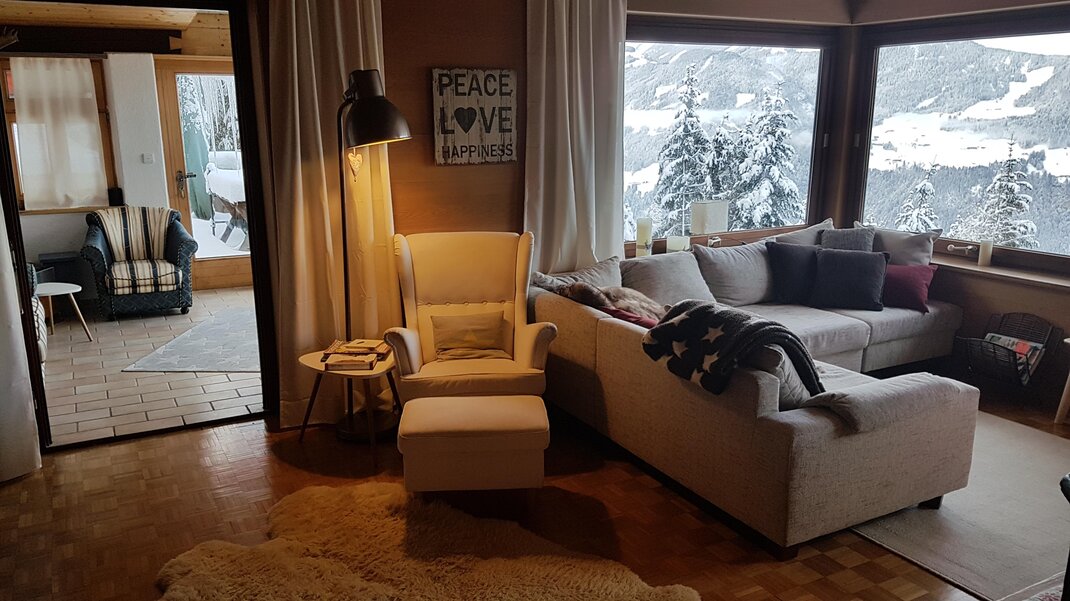 Gelegen auf 1200 Meter haben Sie freie Sicht in das Alpbachtal, auf das Zillertal und Inntal, sowie atemberaubende Sonnenuntergänge über dem Karwendelgebirge.
